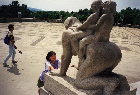 我们计划玩儿的地方又多,包括滑雪场和雕塑公园(Vigeland Parken),我们又穷,去什么地方都是乘坐“11路无轨汽车” ---走路---时间更显宝贵,所以干脆不找了,大著胆子“违法”入境。记得心里还是战战兢兢的,毕竟都是祖国百花园里出来的一贯“三好花朵”和一辈子遵纪守法的良民啊!